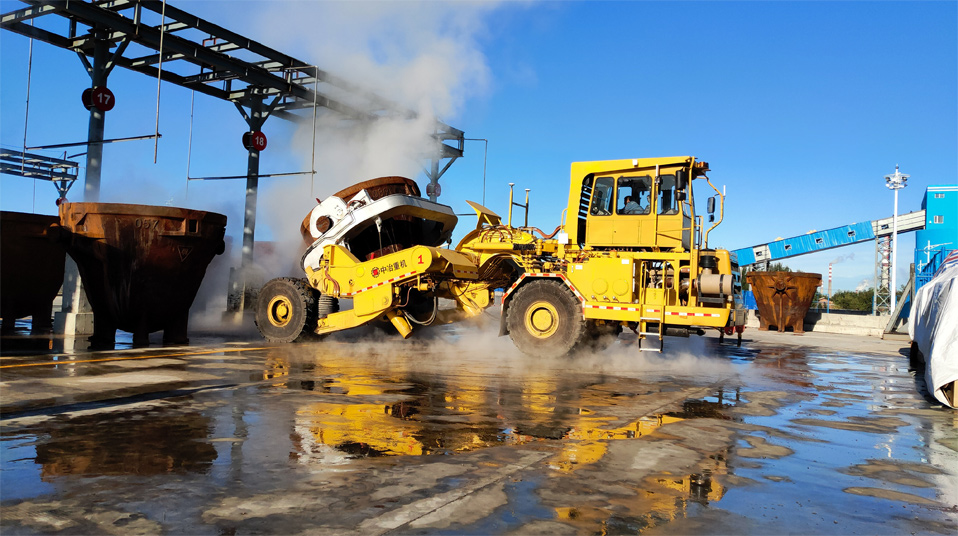 由中冶寶鋼研制的70噸鉸接式抱罐車,采用鵝頸鉸接型式,額定載重75噸,重載最高時(shí)速為每小時(shí)20公里,翻罐角度105度,最大爬坡能力8%,最小轉(zhuǎn)彎半徑9米。該車型應(yīng)用專利技術(shù)10項(xiàng),在國(guó)內(nèi)有色冶煉市場(chǎng)占有率超過75%,先后榮獲中國(guó)有色工業(yè)協(xié)會(huì)、中國(guó)鋼鐵工業(yè)協(xié)會(huì)科技獎(jiǎng),中國(guó)施工企業(yè)管理和中國(guó)循環(huán)經(jīng)濟(jì)協(xié)會(huì)專利獎(jiǎng)等榮譽(yù)。